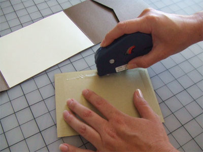 Step 10: Tape the backing Tape the top 1/3 of the back of the completed seal and mount to the front flap. |